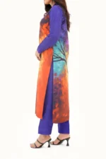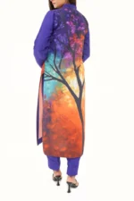 Blaze is a tribute to boldness — not just in color, but in the spirit of growth itself. Inspired by the brilliant, burning phases of a tree’s life, this silk kurti features a vivid mural print that captures the heat of transition. The layered gradients reflect nature’s intense palette — from rich soil to autumn fire — reminding us that change is not just necessary, but beautiful. With its smooth, breathable fabric and structured fit, Blaze is designed for those who evolve out loud, carrying light with every step.