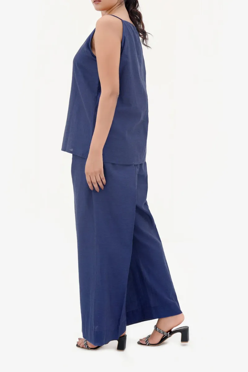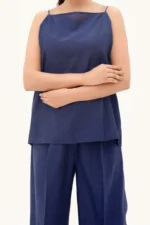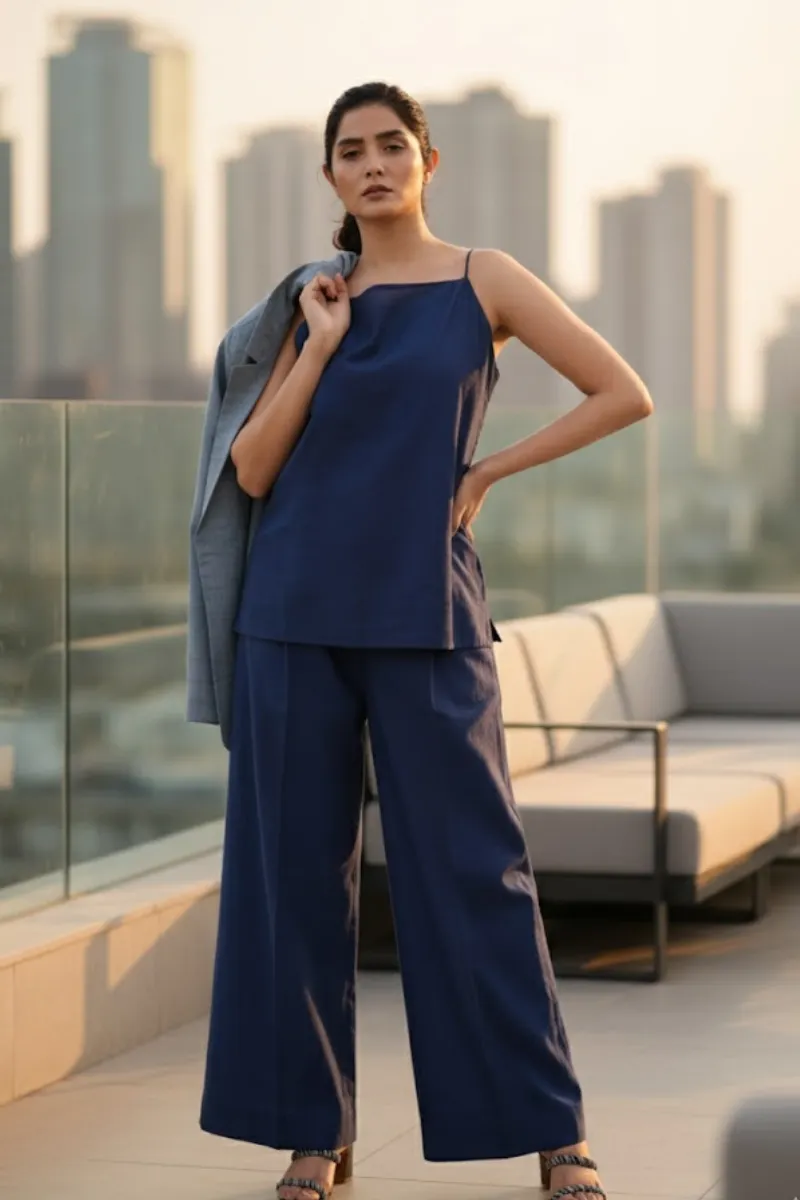 Vault is a refined expression of modern professionalism — a navy blue matching set crafted in breathable crepe chiffon that balances elegance with ease. Featuring a sleeveless top and straight-cut trousers, this ensemble is built for the woman who moves through her day with intention and grace. The minimalist design speaks volumes with its clean lines and polished silhouette, transitioning seamlessly from office meetings to evening engagements. Vault is more than just clothing; it’s a wearable symbol of strength, clarity, and understated power.